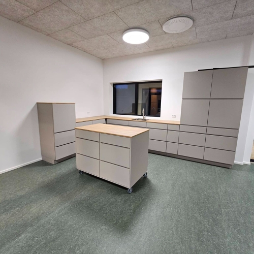 - Specialtilpasning af skabe, bordplader og låger